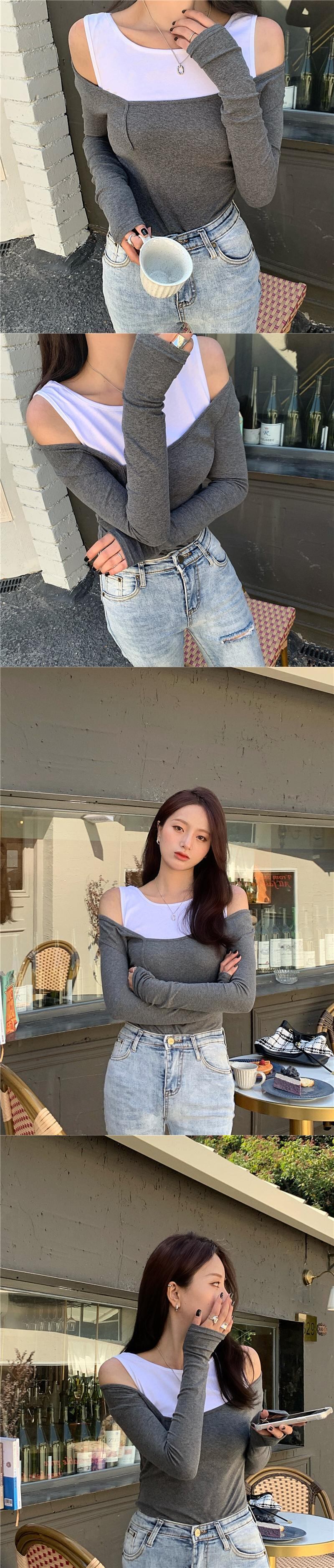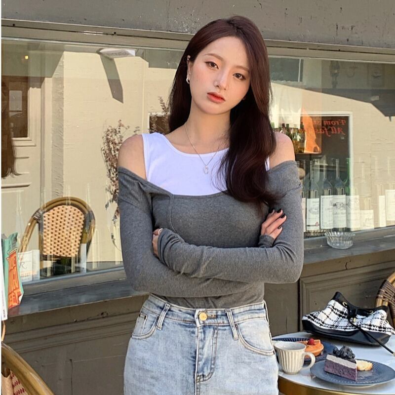 グレーブラウス オータムクロップドショートカラーシャツ Tシャツ ロング 秋物 ハンチェンe29840368461