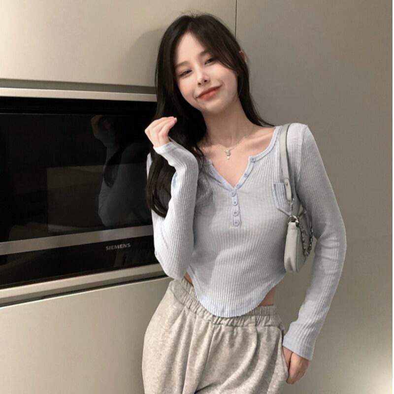 薄手Vネックショートシャツ オータムスタイルブラウス ロング 秋物 ハンチェンe12998043270
