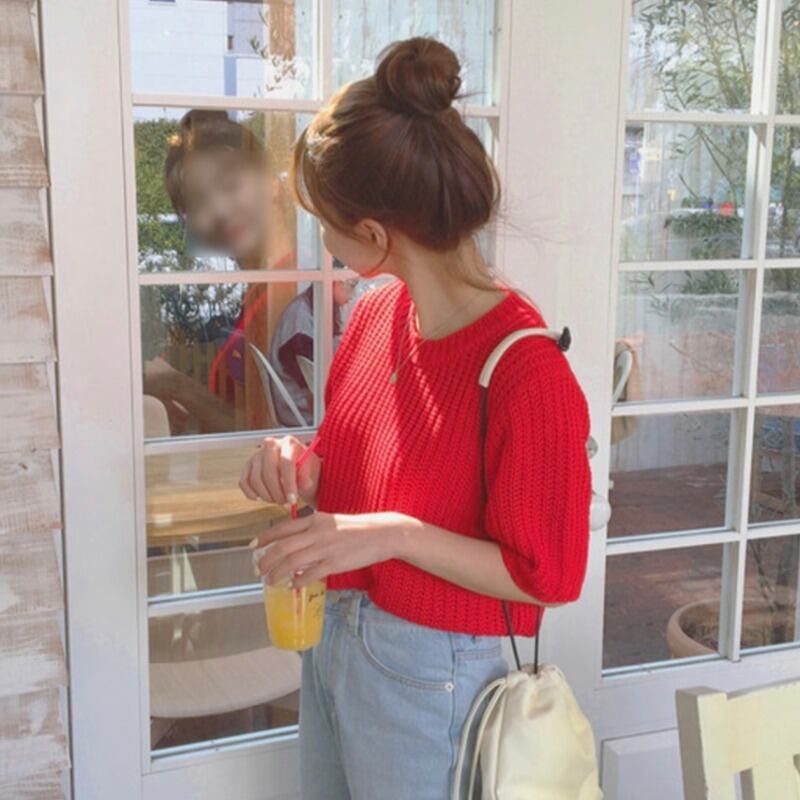 オータムセーター ラウンドネックスリーブニット 秋物 Oネック ハンチェンe7776169066