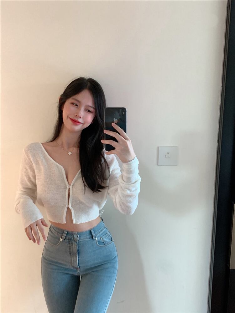 ショートVネックニットカーディガンジャケット オータムブラウス レディース ロング 秋物 ハンチェンe77325629947