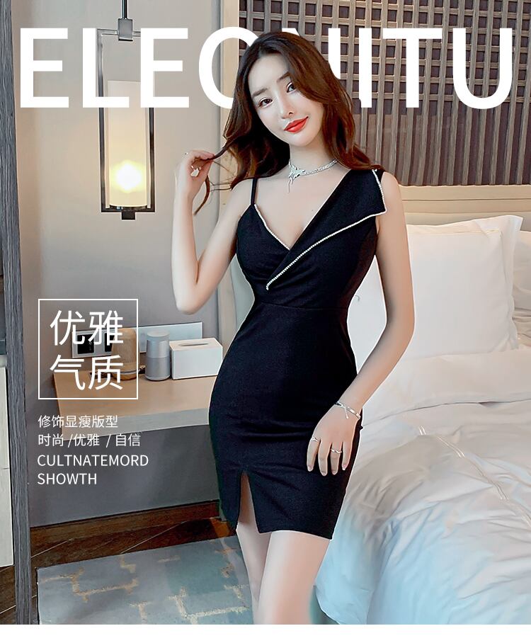 Vネックスリムドレス サマーショートスカート 夏物 ハンチェンe30473779675