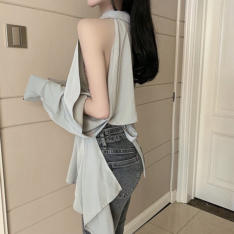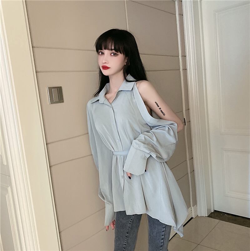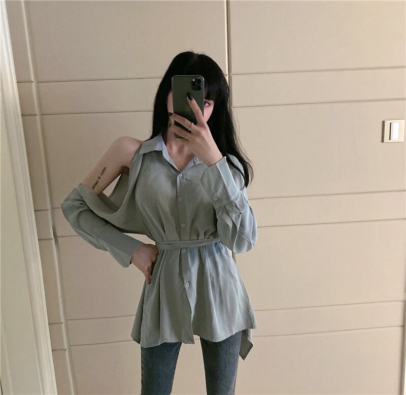 シャツ オータムスタイルウェストトップス ロング 秋物 ハンチェンe18186565723