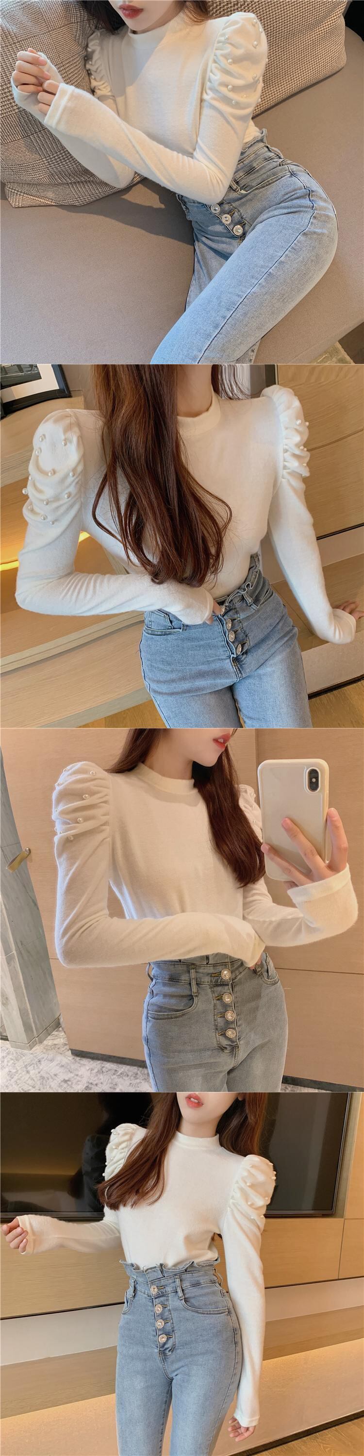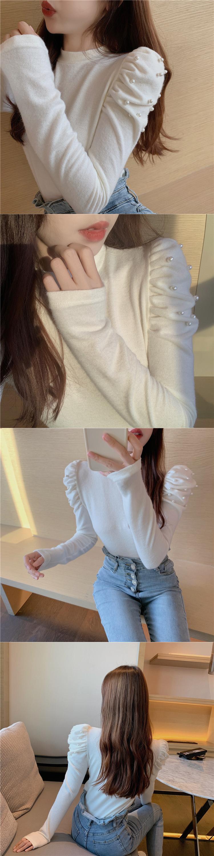 オータムスリーブプルオーバー セーター スリムトップス 秋物 ハンチェンe76775820834