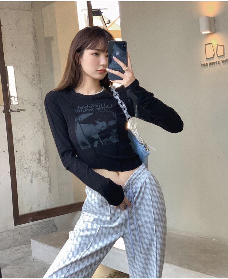 Tシャツ オータムドレス スリム薄手ストレッチショートトップス ロング エラスティック 伸縮 秋物 ハンチェンe83702348495