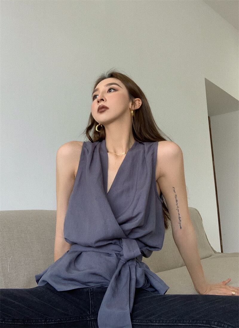 スタイルスタンダードVネックノースリーブウェストシャツ トップス レディース レトロ ハンチェンe91964769326