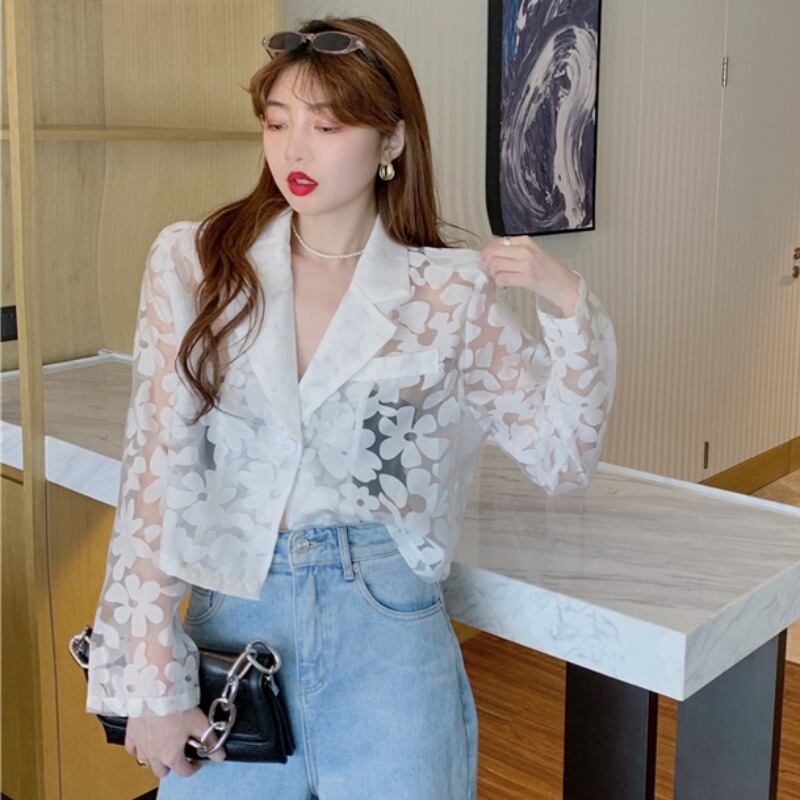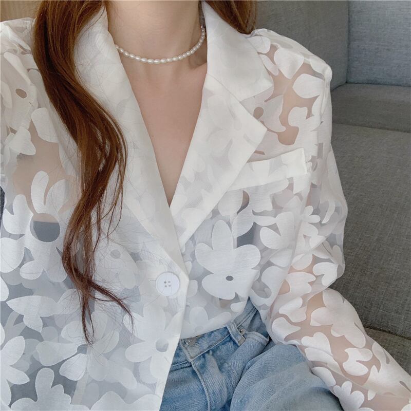 サマーFlowerデザイン スタイル薄手ショートジャケット 夏物 フラワーデザイン ハンチェンe626253300