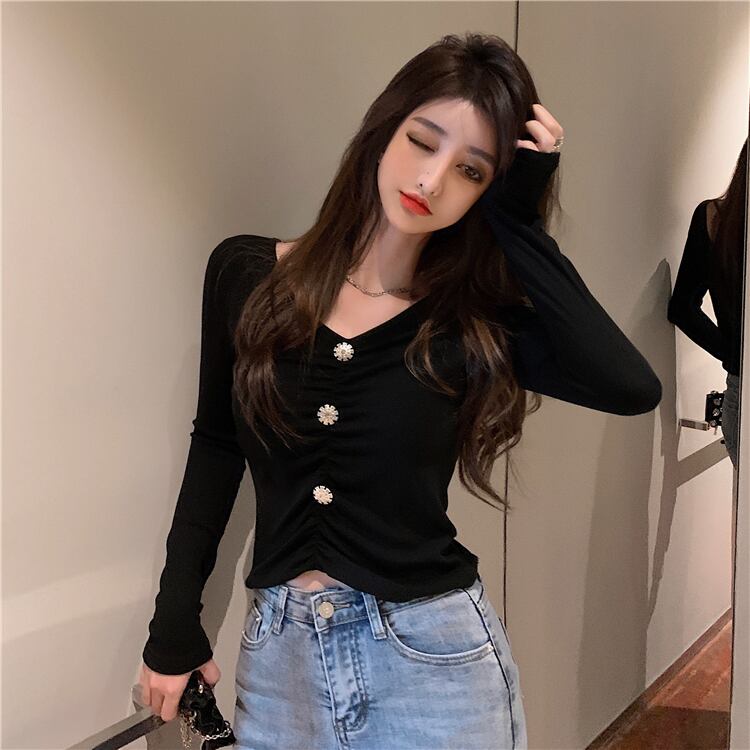 オータムVネックスリムシャツ Tシャツ トップス ロング 秋物 ハンチェンe24991953774