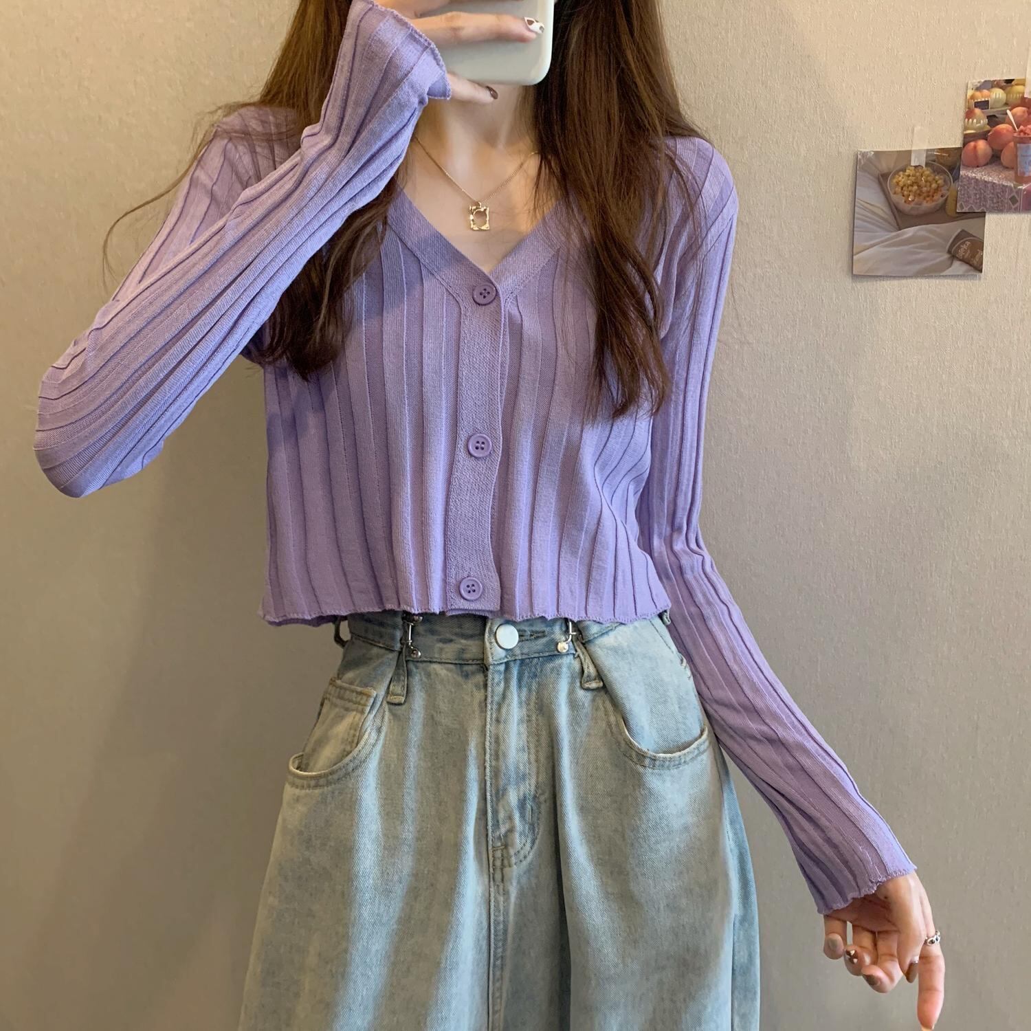 オータム薄手ニットセーター ショートVネックカーディガンジャケット ロング 秋物 ハンチェンe1415196713