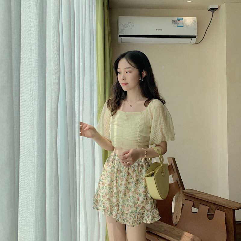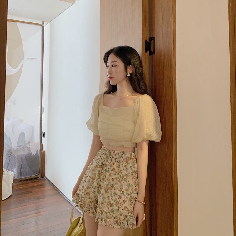 サマースタンダードショートシャツ ハイウェストウェストワイドレッグショーツ レトロ 夏物 ブルマー ワイドパンツ ハンチェンe52457398588