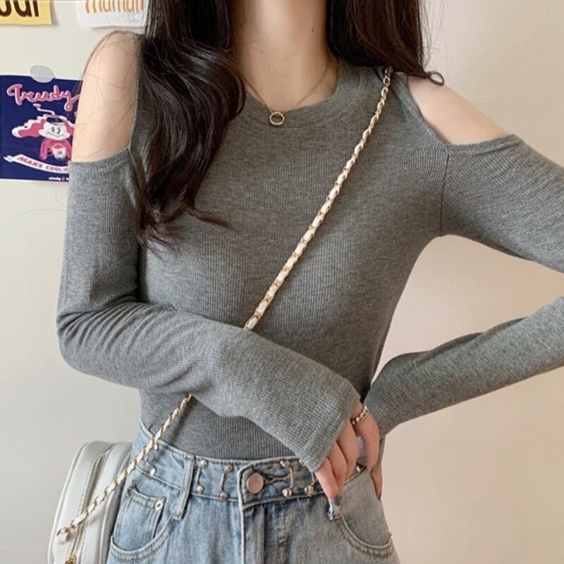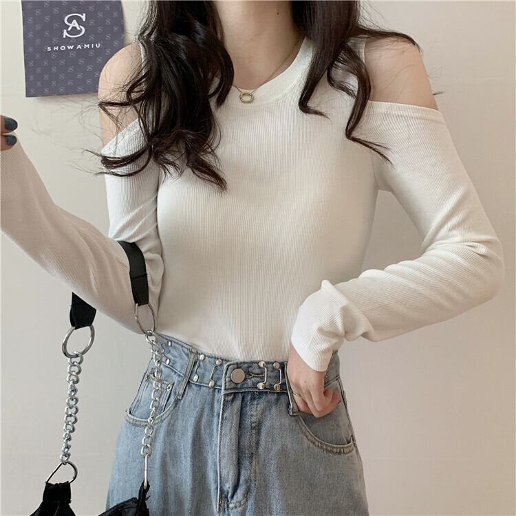 オータムストラップレススリム薄手Tシャツ トップス レディース ロング 秋物 ハンチェンe84389895557