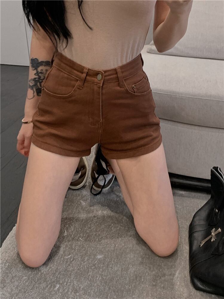 ショーツ サマーハイウェストソリッド カラー薄手パンツ 夏物 ブルマー ソリッドカラー ハンチェンe38149890596