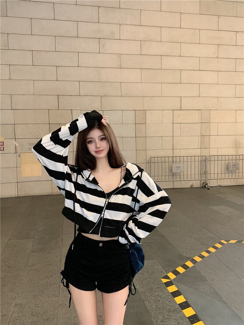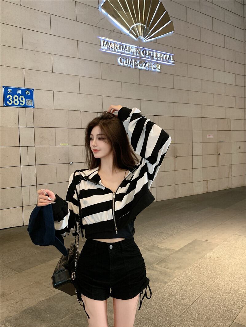 ルーズジッパーフードカーディガンオータムブラウス レディース 秋物 ハンチェンe38425408553