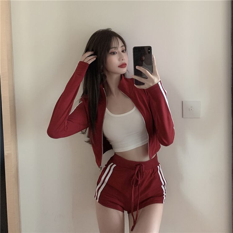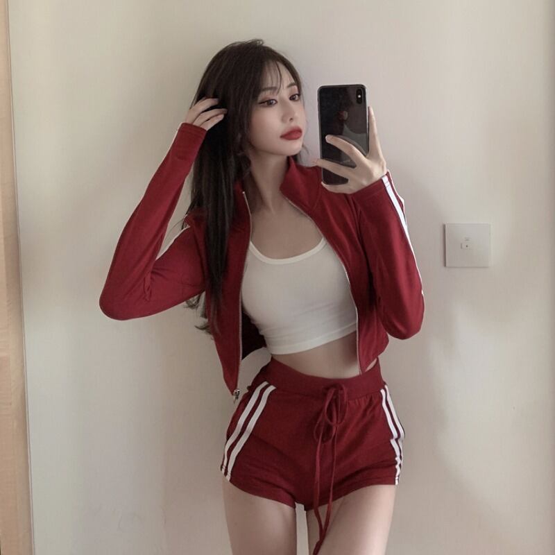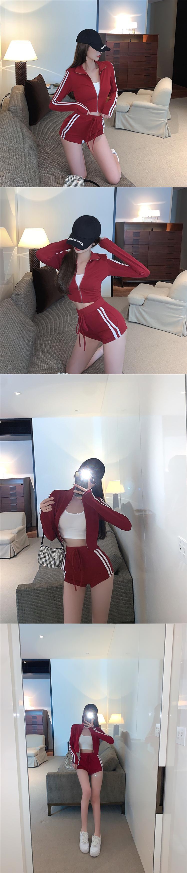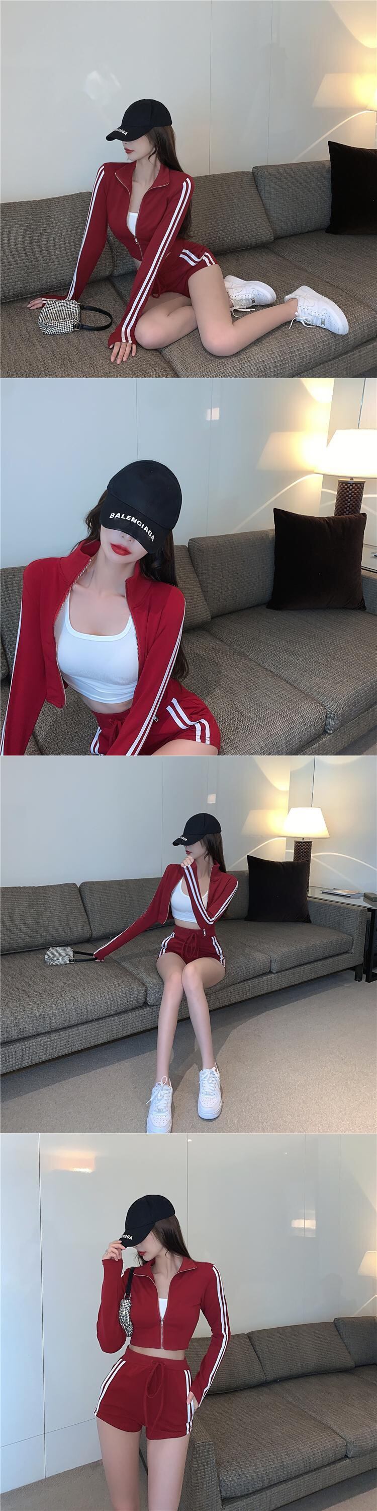 オータムスリムストライプジャケット ハイウェストギャザーショーツ 秋物 ブルマー ハンチェンe30567831603