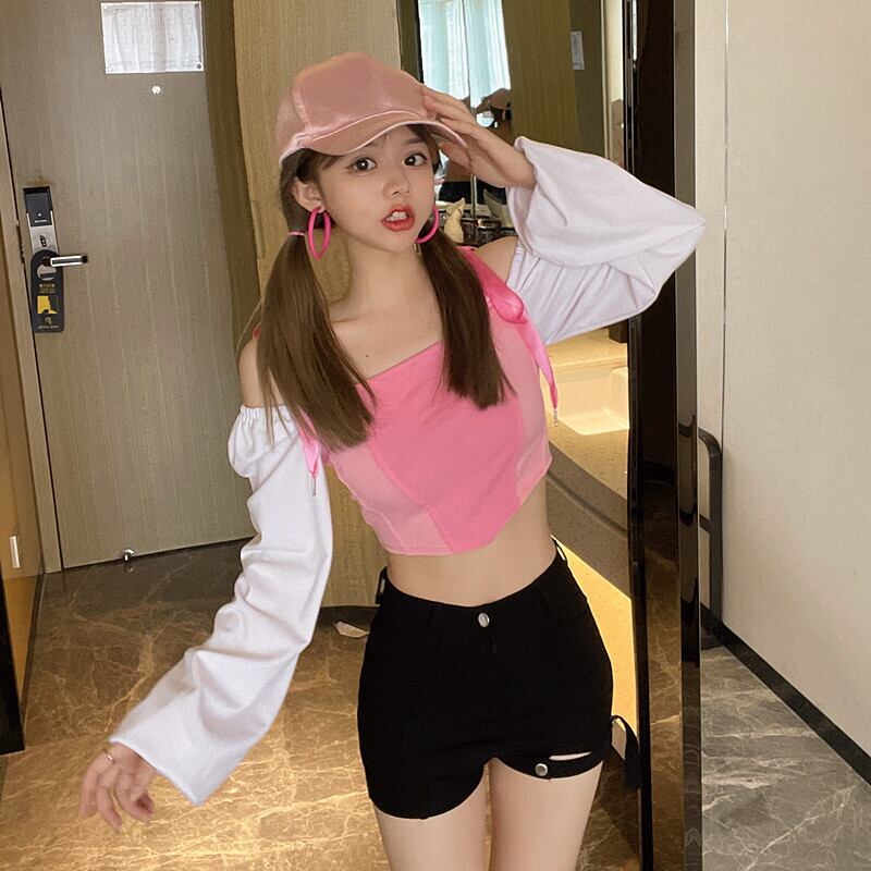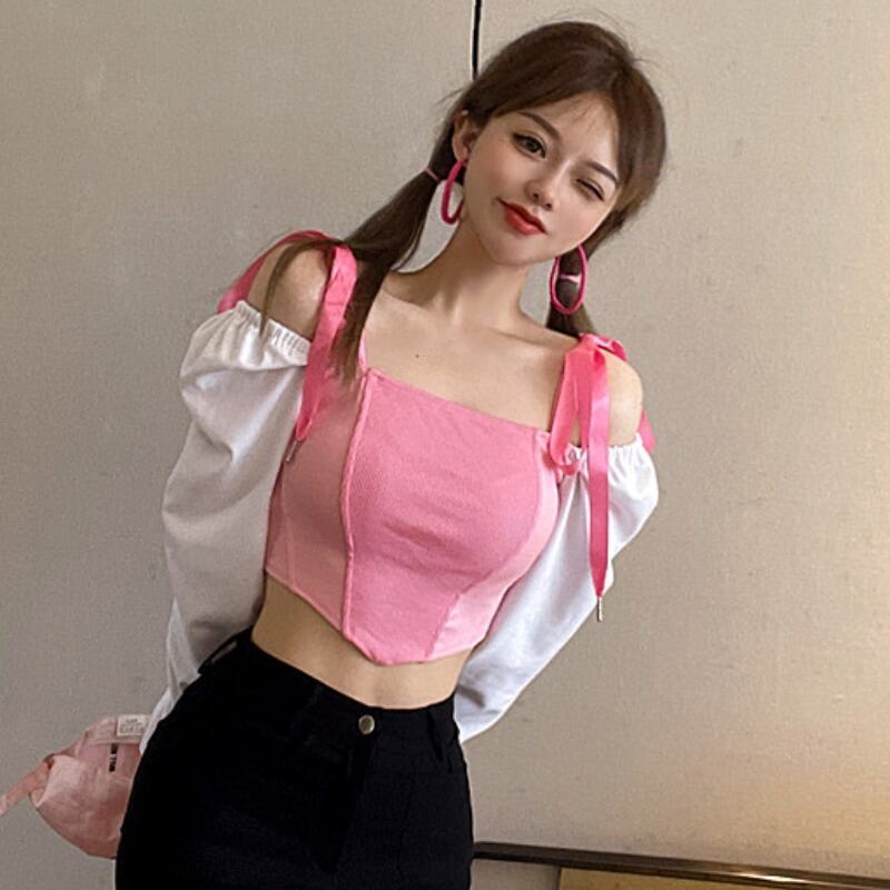 ショートトップス オータムスタイルスリーブストラップレススリムシャツ 大人ガーリー スウィート キュート カジュアル 秋物 ハンチェンe38416059768