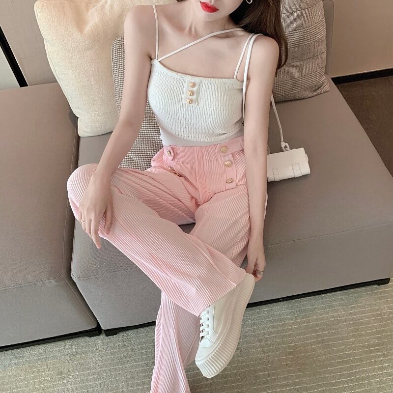 色:青いスリング,ホワイトサスペンダー,ピンクワイドレッグパンツ,ホワイトワイドレッグパンツ