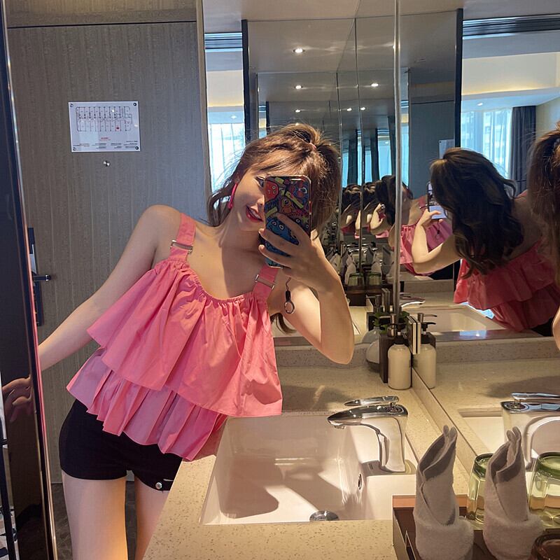 Vネックノースリーブレディースシャツ トップス 大人ガーリー スウィート キュート カジュアル ハンチェンe4407822798