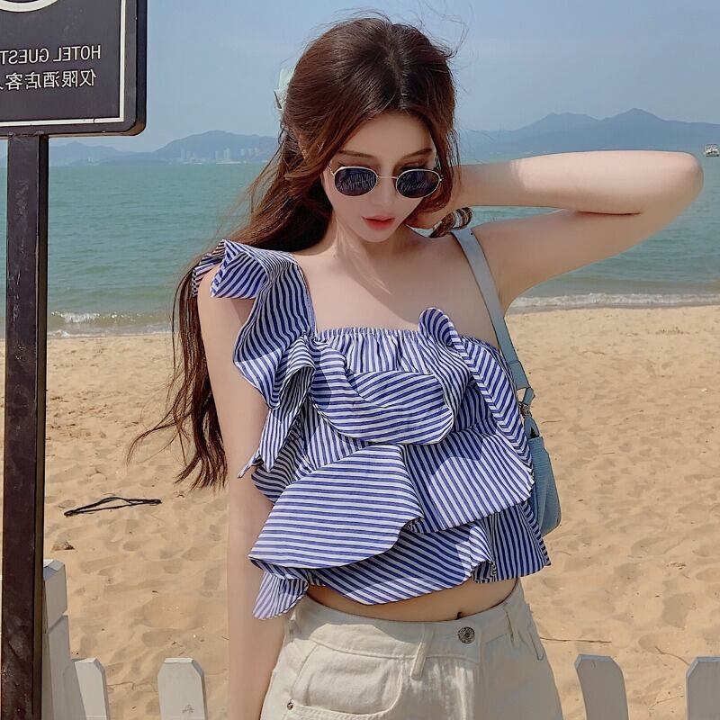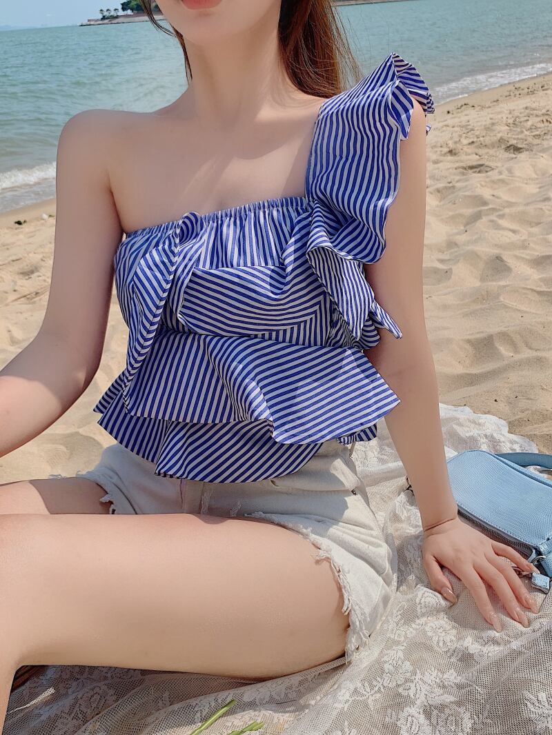 サマーカラースリムストライプシャツ トップス レディース 夏物 ハンチェンe9131265528