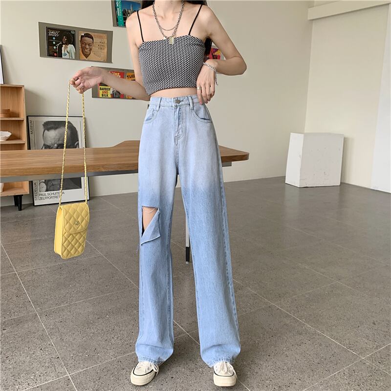 サマースタイル薄手ハイウェストウェストルーズワイドレッグジーンズ レディース 夏物 ワイドパンツ ハンチェンe72282312965