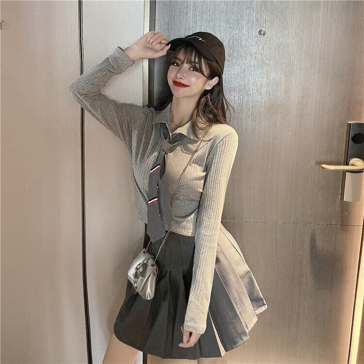 オータムプリーツショート ロング 秋物 スカート ハンチェンe93084847774