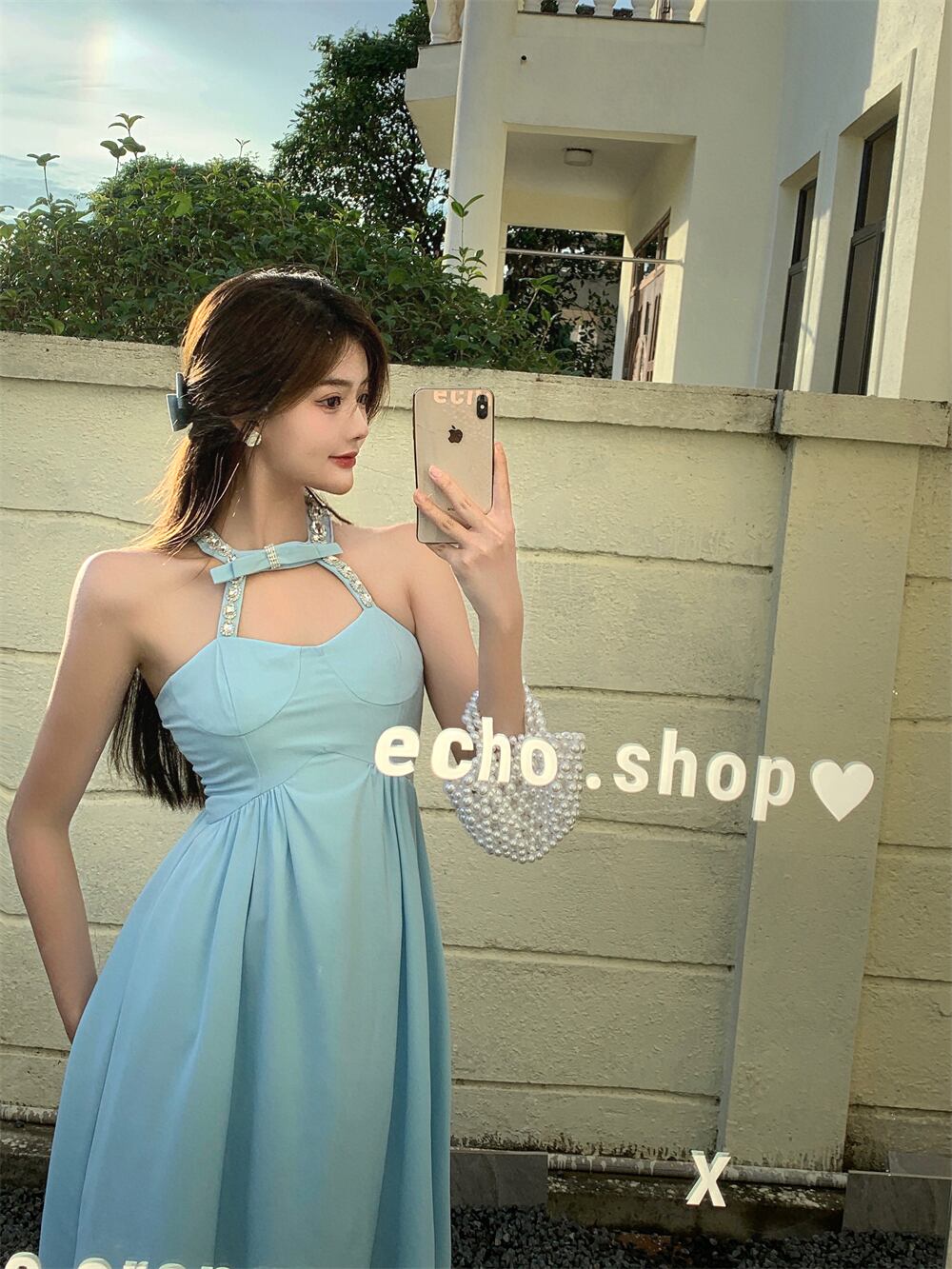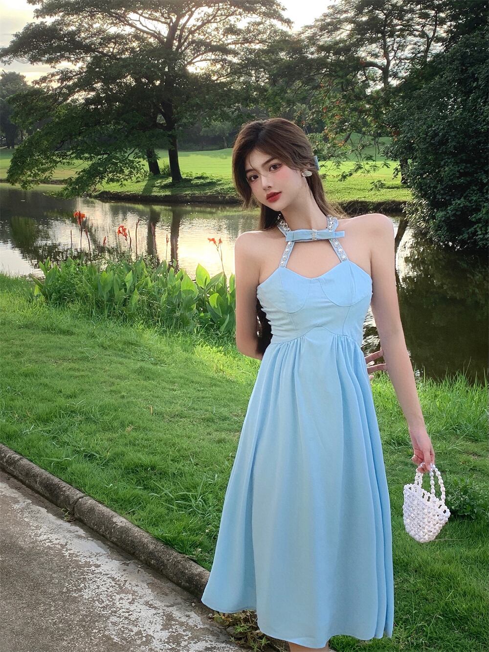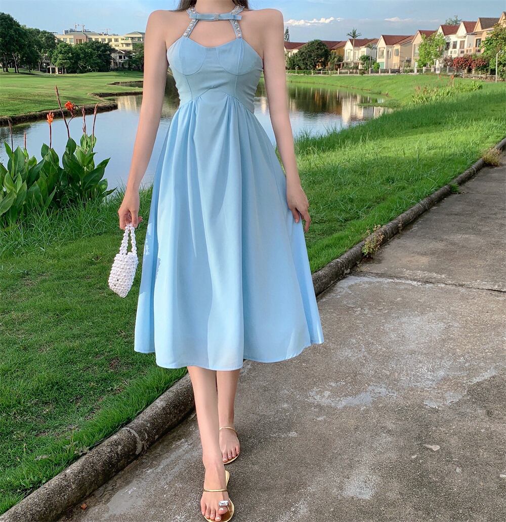 スタイルホルタートップス リボン薄手Aラインドレス レディース ハンチェンe32671588448