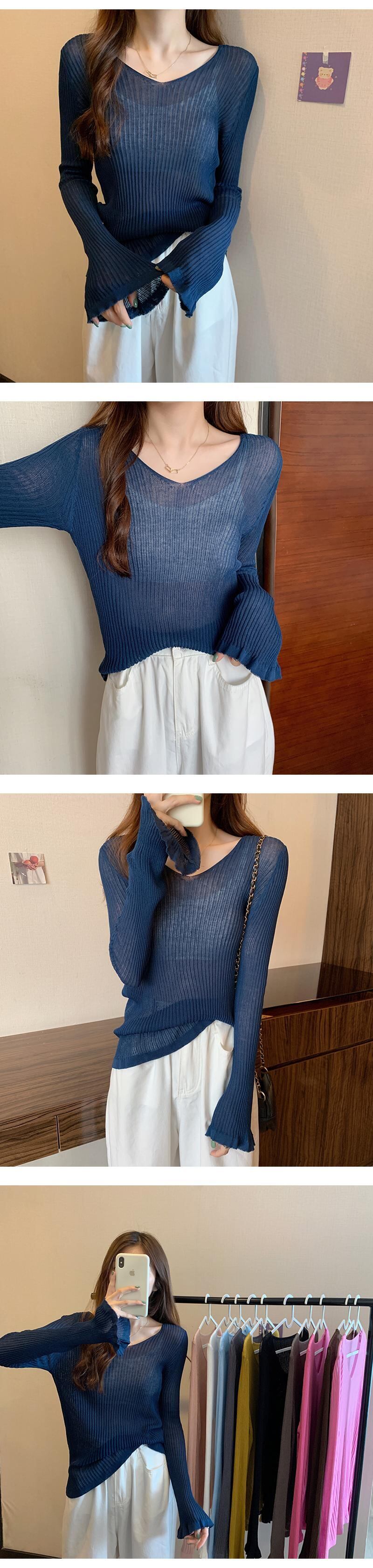 薄手セーター ブラウス スタイルVネックシャツ トップス ロング シルク ハンチェンe60452830554