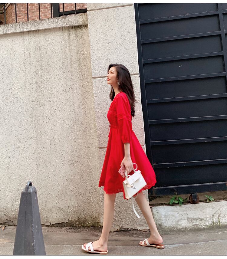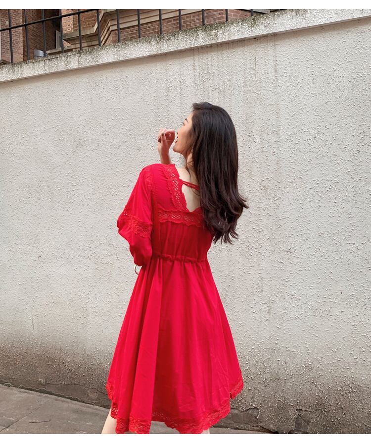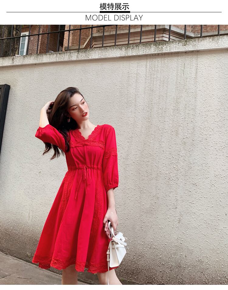 サマードレス ホワイトウェストレースショートスカート 夏物 ハンチェンe21924346626