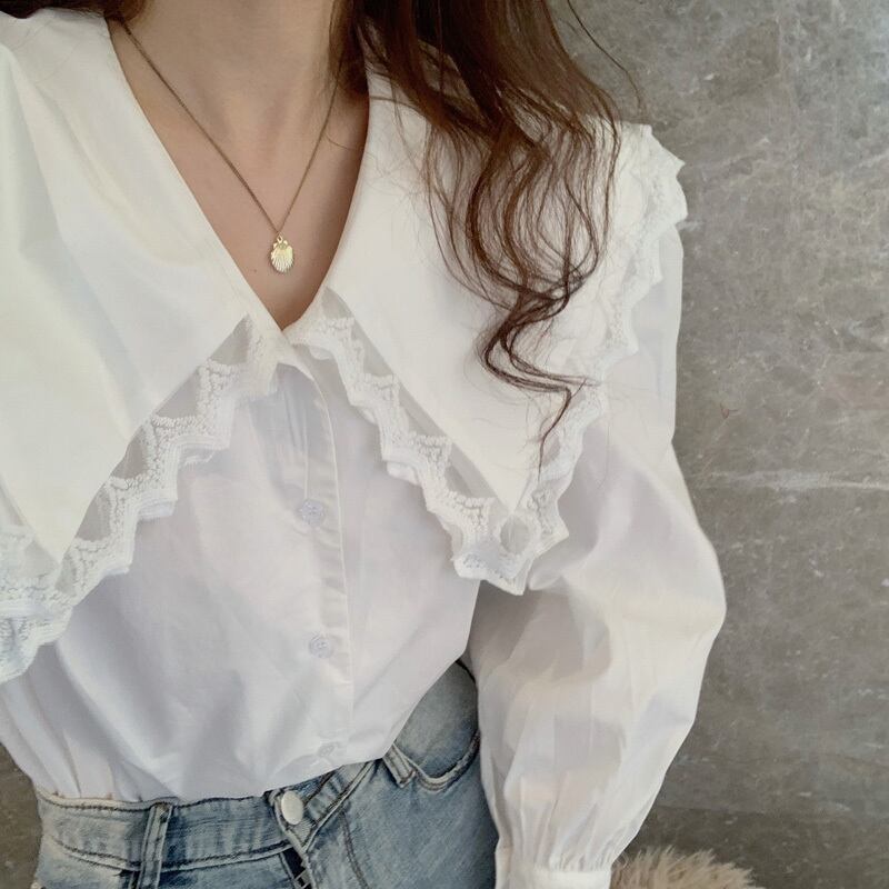 シャツ レディーススタイルレースカラートップス ロング ハンチェンe81017541620