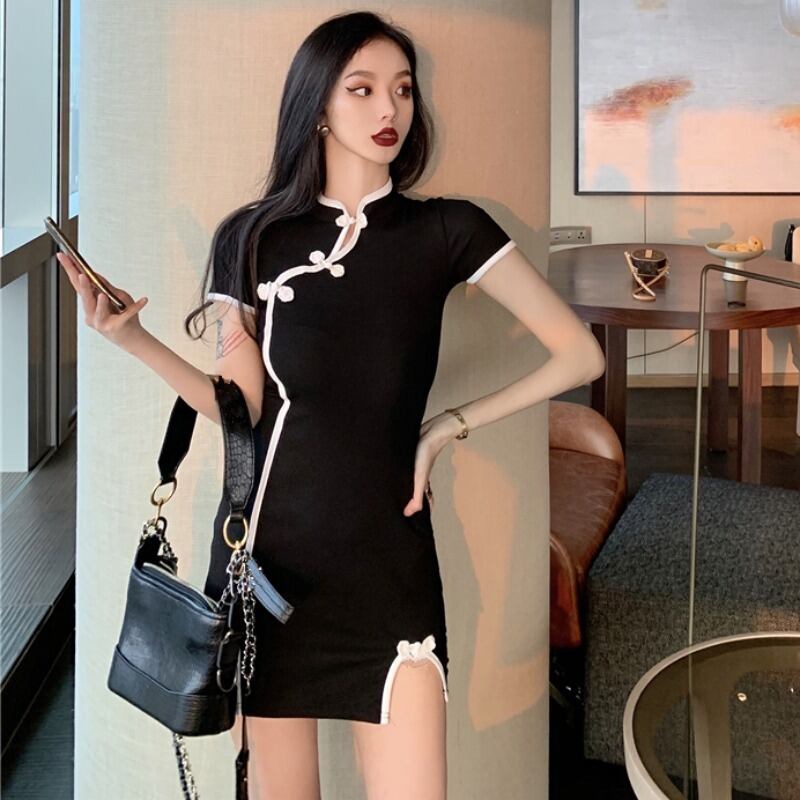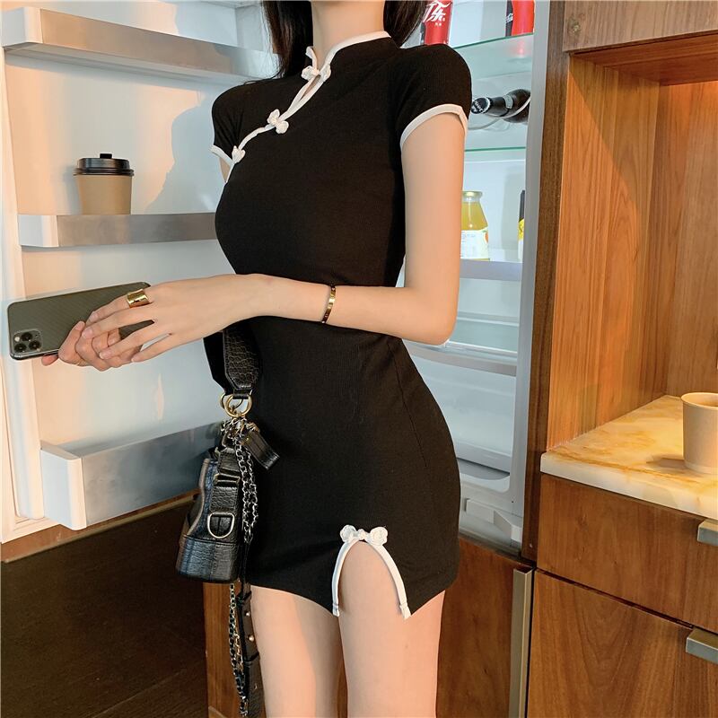 サマースタンダードスリムドレス レディース レトロ 夏物 ハンチェンe91195363202