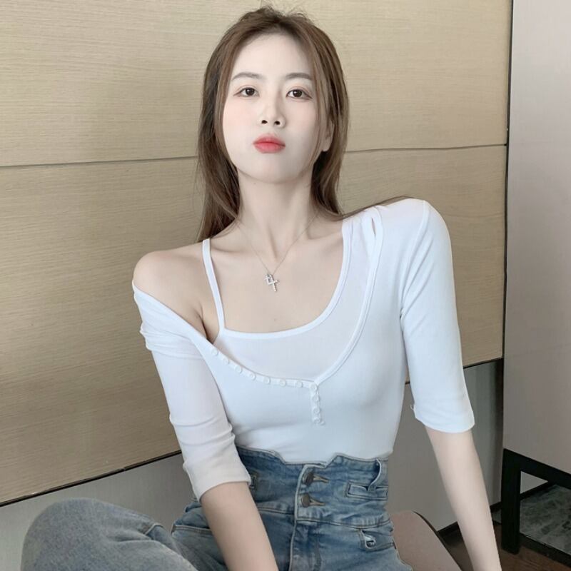サマースタイルスリムスリーブTシャツ 夏物 ハンチェンe67776104714