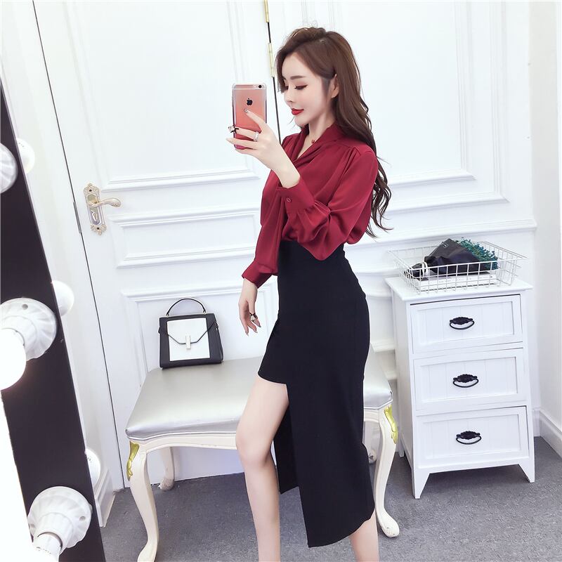 オータムスタイルシャツ 薄手スカート ロング 秋物 ハンチェンe819190628