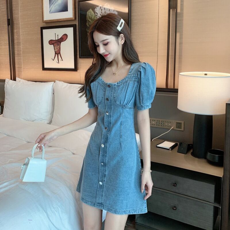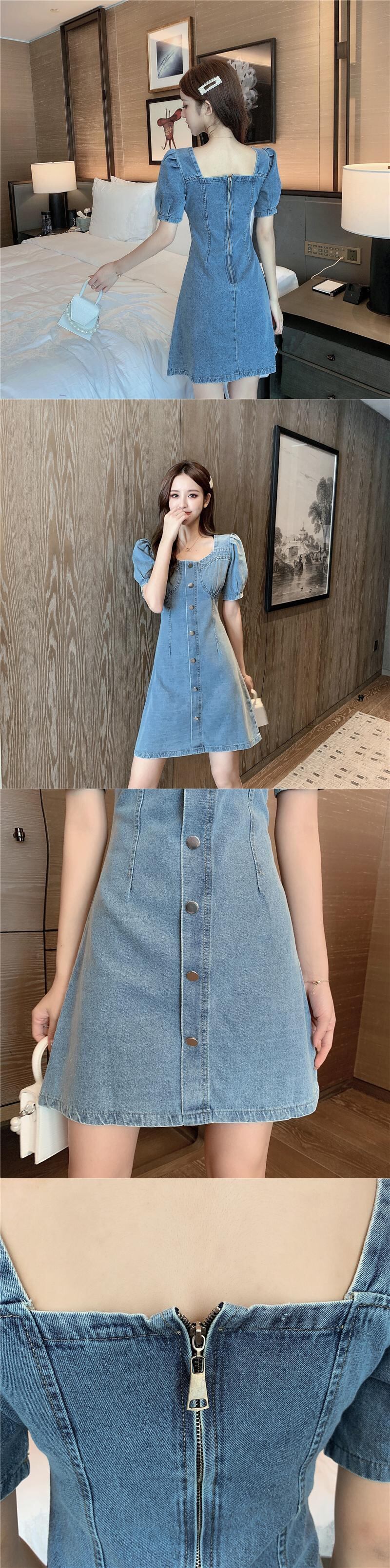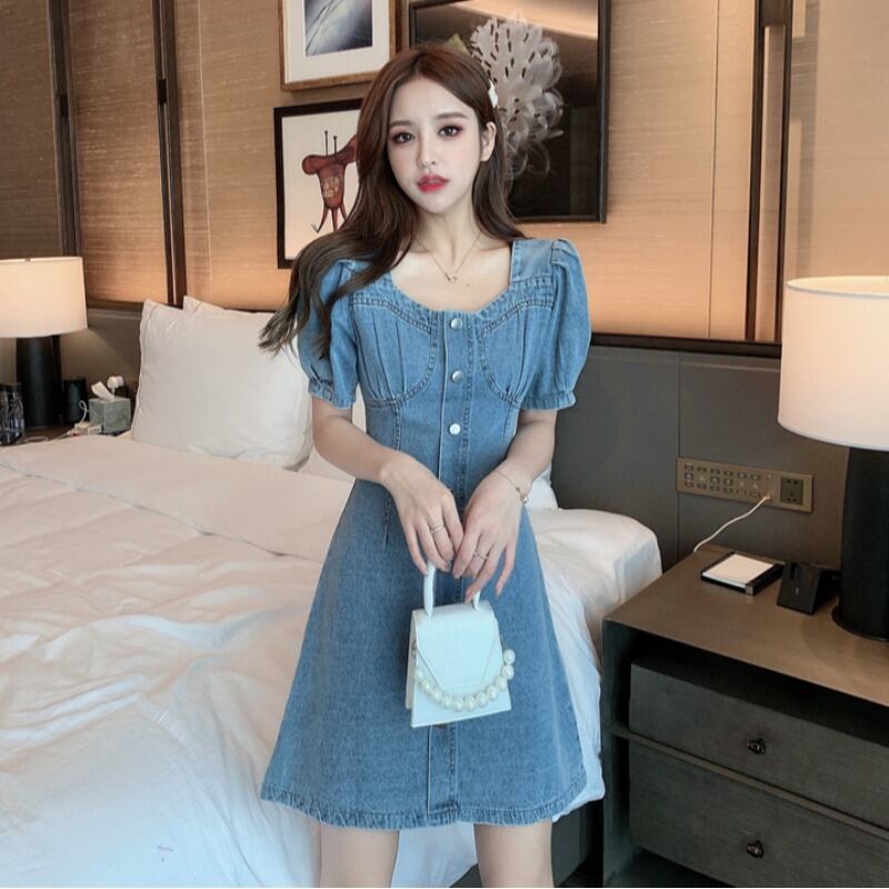 スタンダードサマードレス カラースリーブウェスト薄手 レトロ 夏物 スクウェア ハンチェンe86941714084