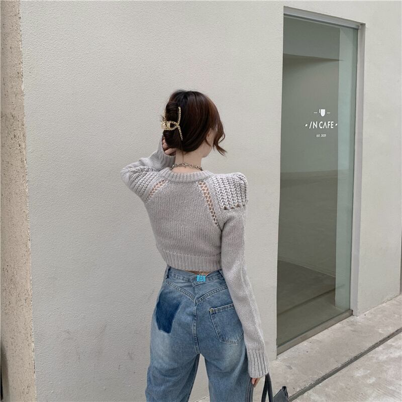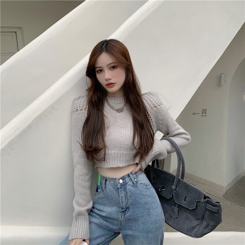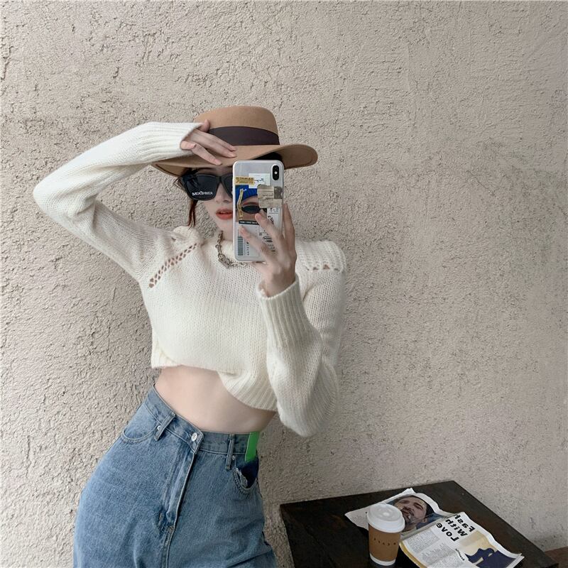 オータムクロップドショートセーター トップス 秋物 ハンチェンe8696604056