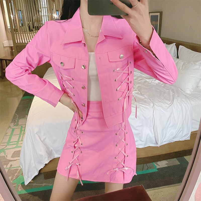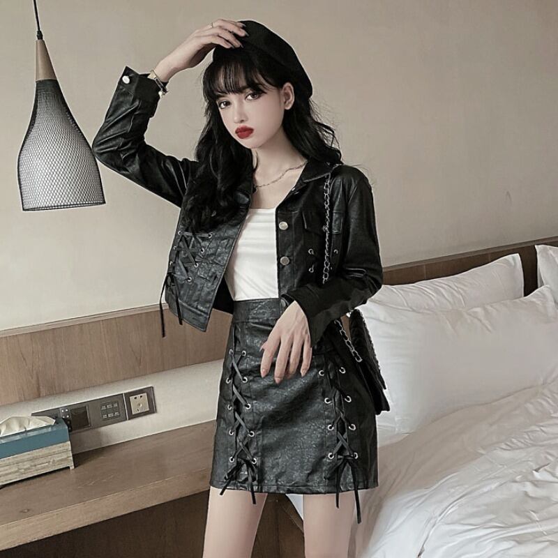 スリムレザージャケット ハイウェストウェストスカート ストリート ハンチェンe48338408873