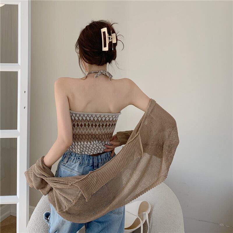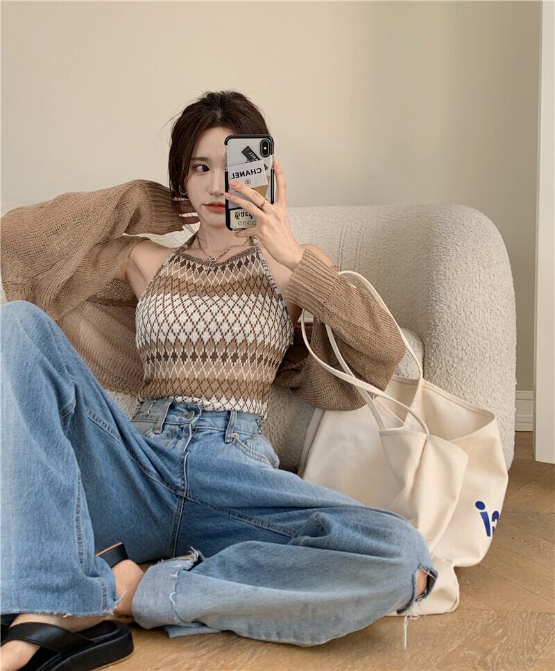 オータムスタンダード格子柄ニットジャケット ロング レトロ 秋物 ハンチェンe2066033849