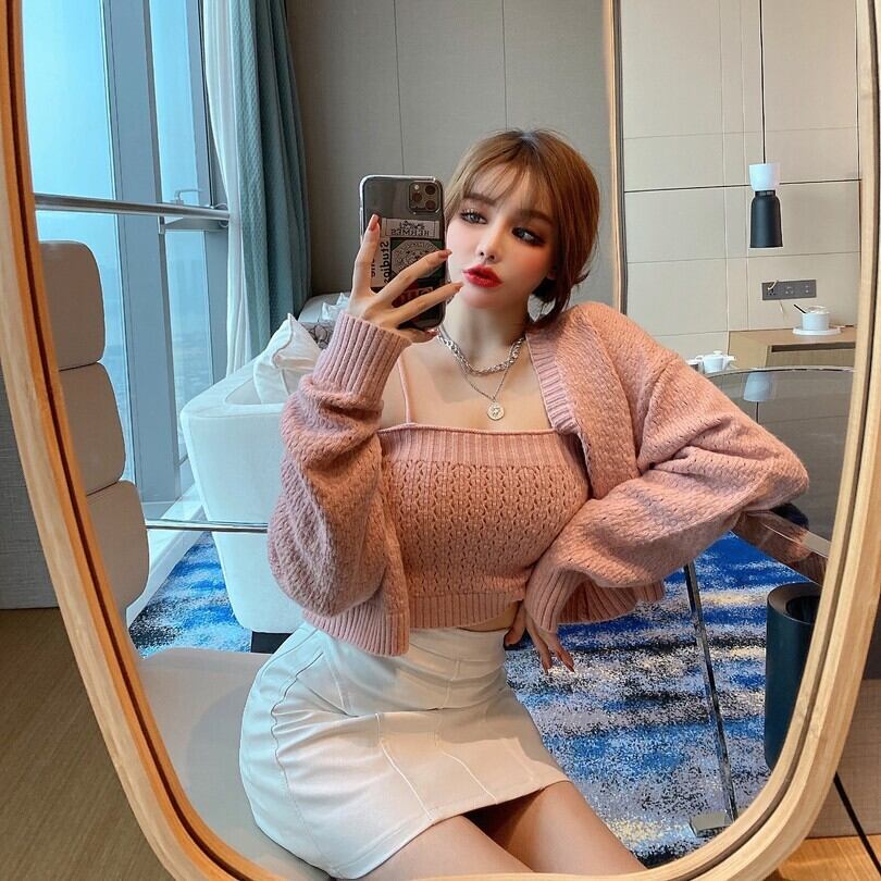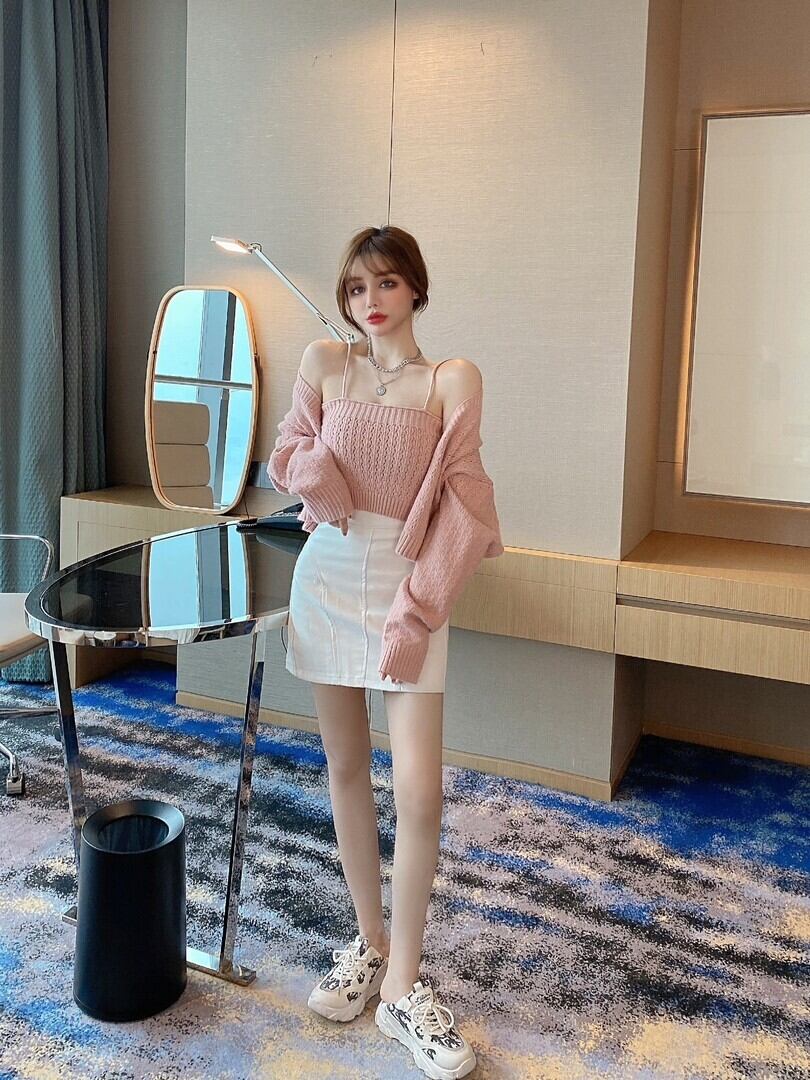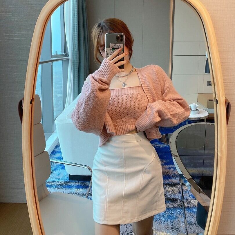 スプリングセーター コート カーディガンハイウェストウェストスカート 春物 ハンチェンe67974775572