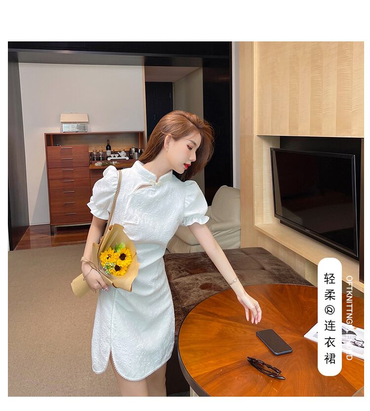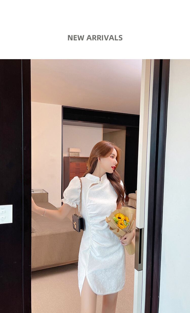 サマースタンダードスタイルスリーブウェスト薄手ドレス レディース レトロ 夏物 ハンチェンe77866997967