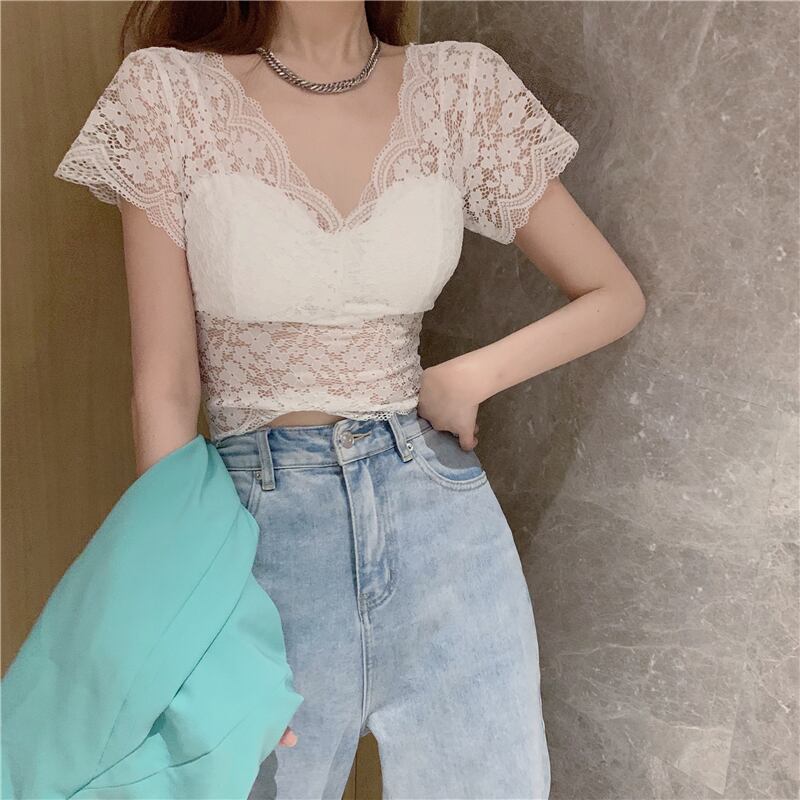 サマースタイルVネックショートスリムレーストップス シャツ 夏物 ハンチェンe59730399955