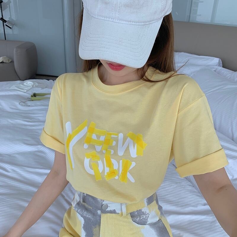 色:黄色のtシャツ,ホワイトパウダーTシャツ,黄灰色のスカート,ブルーピンクのスカート