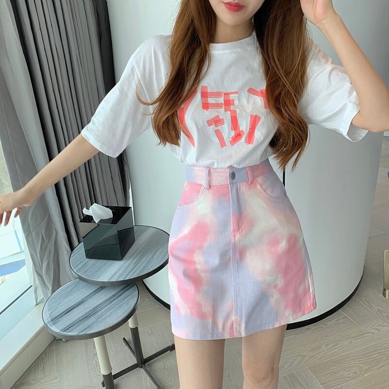 サマーTシャツ ハイウェストウェストスリムスカート 夏物 ハンチェンe39077445287