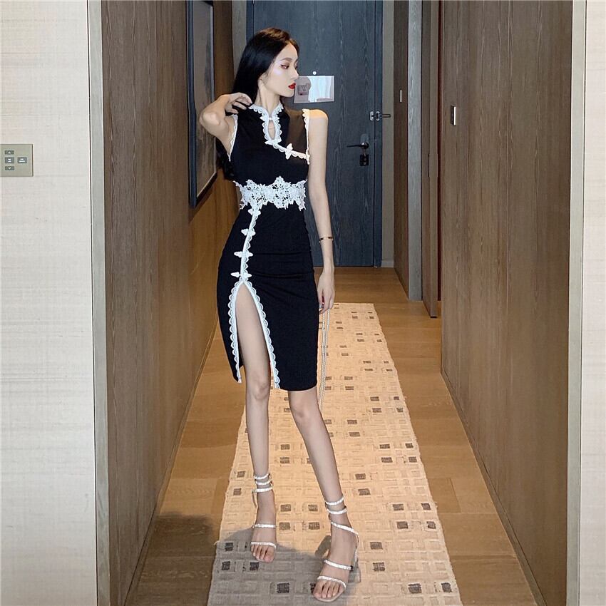 サマースタイルスタンダードウェストドレス レトロ 夏物 ハンチェンe21588290752