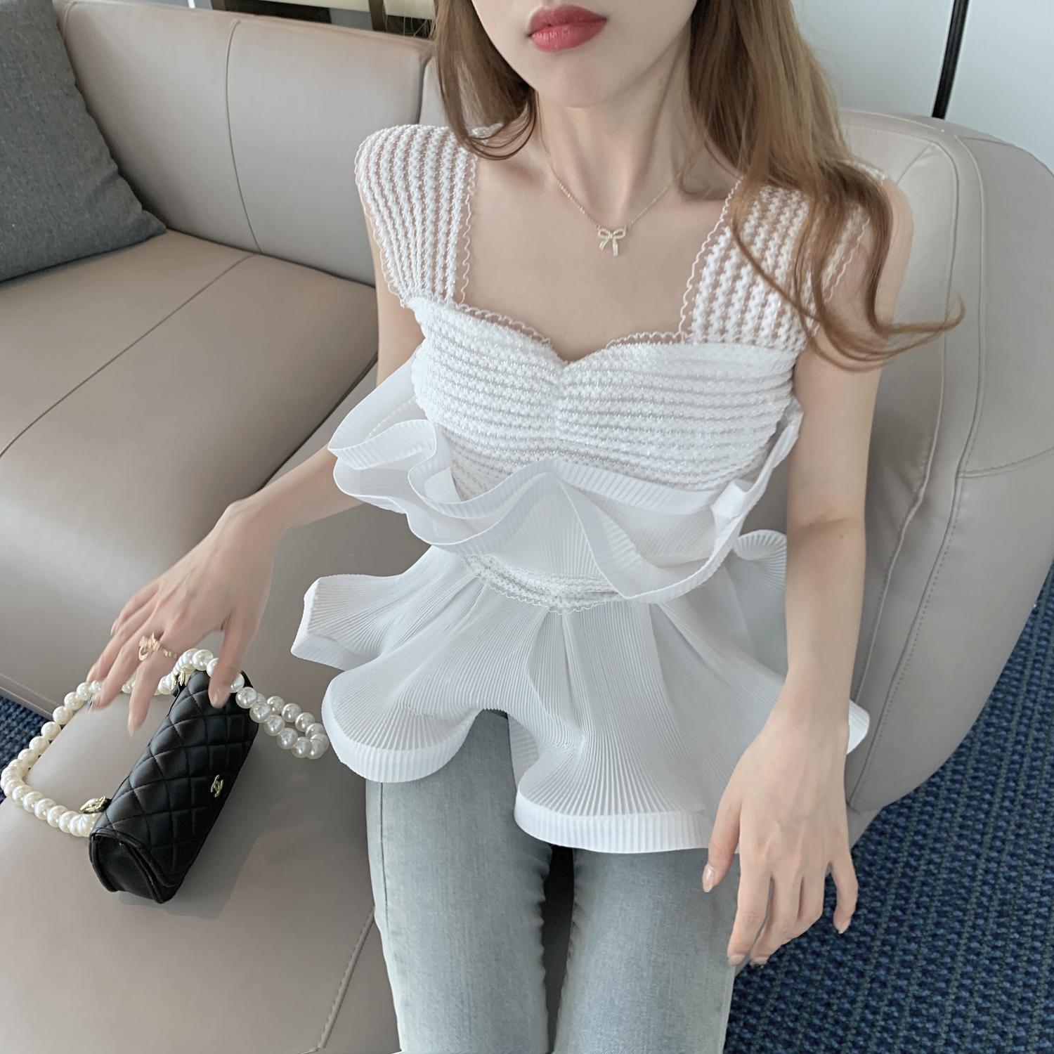 サマースタイルレースノースリーブトップス 夏物 ステッチ ハンチェンe88589711999