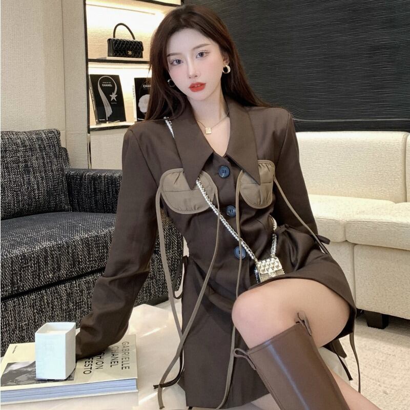 オータムスタイルギャザーウェストジャケット 秋物 ハンチェンe4749084154