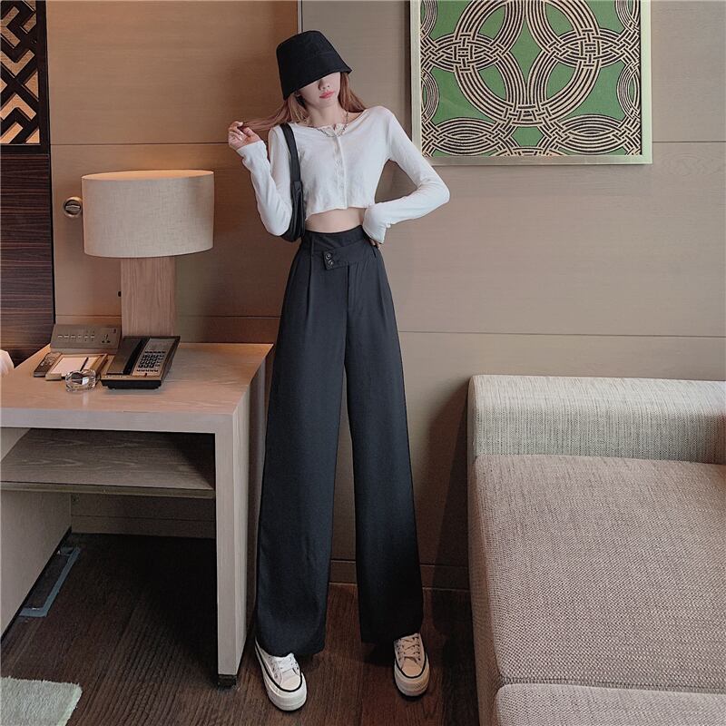 パンツ レディースハイウェストルーズロングカジュアル ハンチェンe12885964809