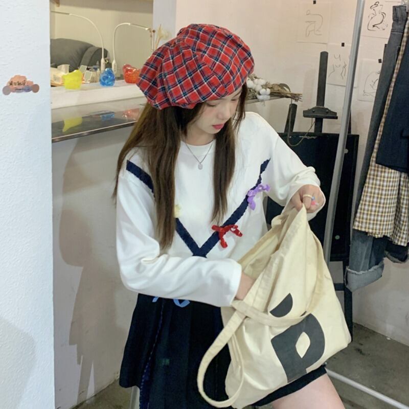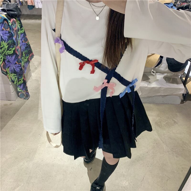 カラーリボンTシャツ オータムルーズセーター レディース ロング 秋物 ステッチ ハンチェンe50760340153