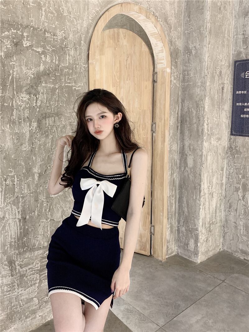 サマーリボンニットハイウェストウェストスカート 夏物 ハンチェンe54933301700