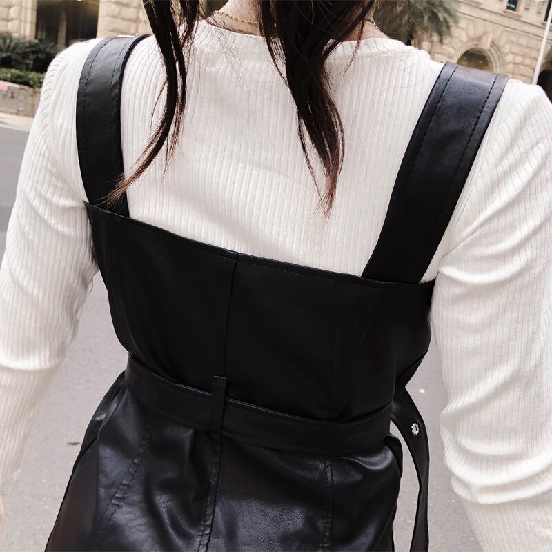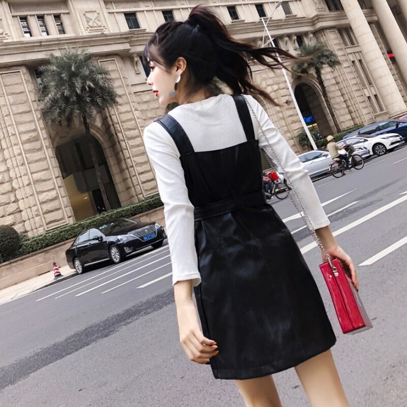 色:ブラックサスペンダーレザースカート,白いドレスと黒いスカートスーツ
