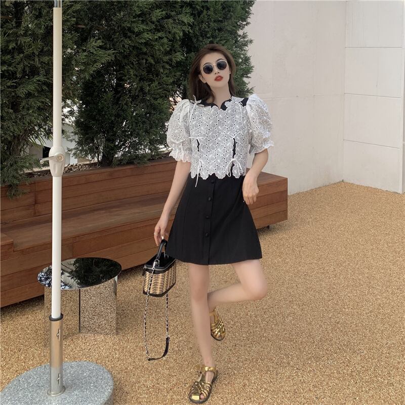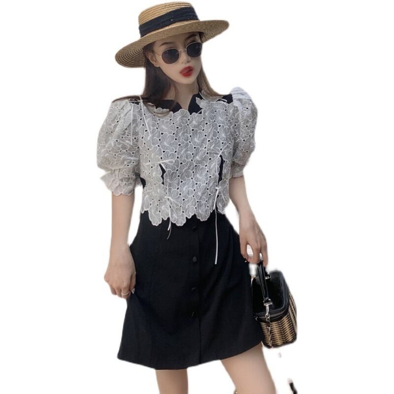 レースウェストAライン薄手ドレス レディース ステッチ ハンチェンe44751946972