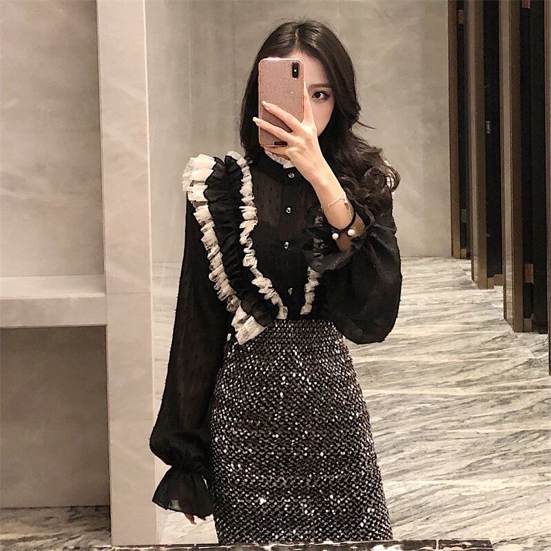 オータムカラールーズシフォンシャツ トップス ロング 秋物 ハンチェンe83749767521
