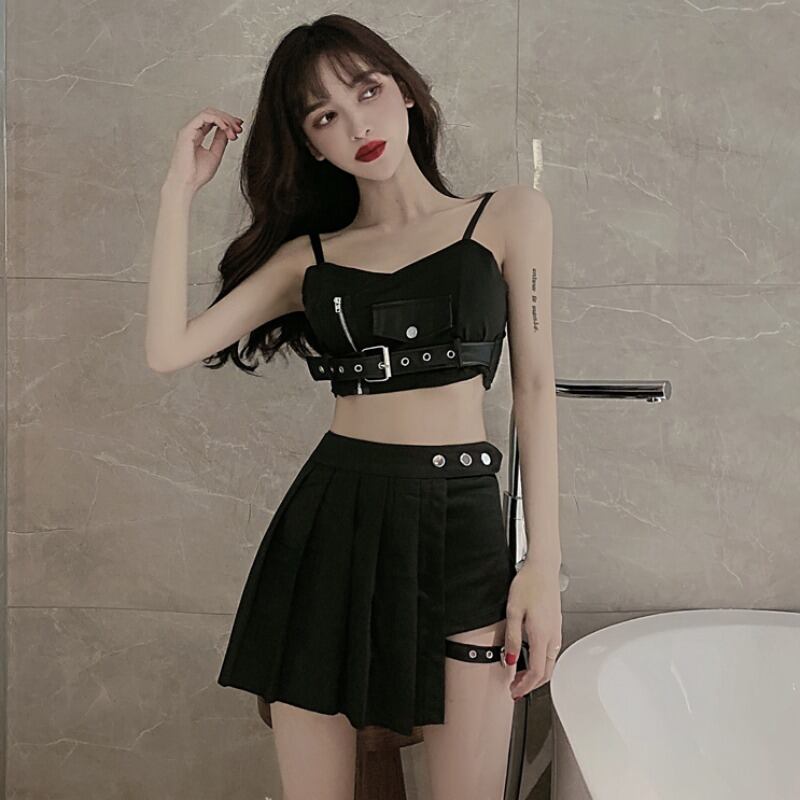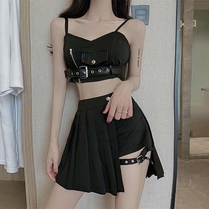 色:赤いグリッドスリング,ブラックサスペンダー,黒スカート