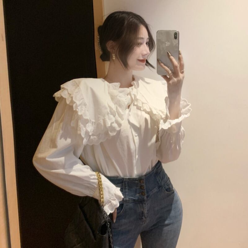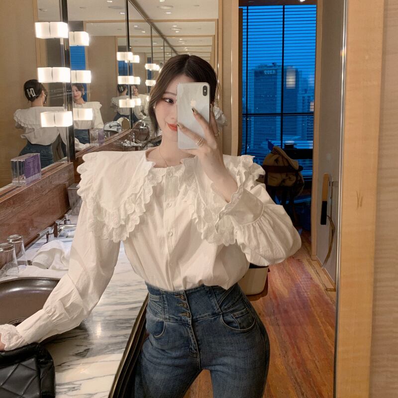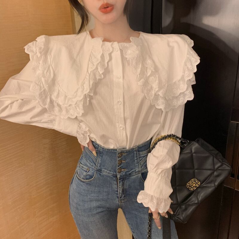 オータムレースルーズホワイトシャツ 秋物 ハンチェンe44964265210